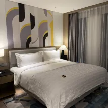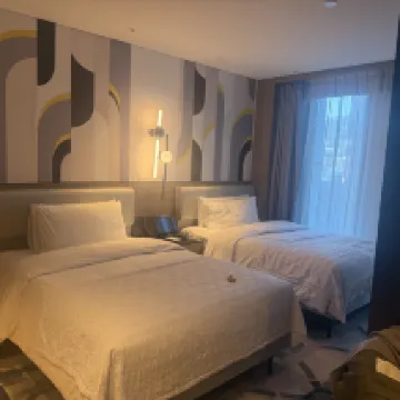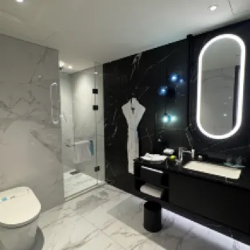 The room was tidied and cleaned daily, and we even received complimentary chocolates. The hygiene was excellent; everything was spotless and organized. The room itself was spacious, and the 24-hour gym was very convenient. The service attitude was also great.