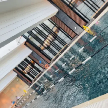 Conveniently located next to IFC mall. There is a walkway at L1 that leads you directly to the mall with many high end stores. However, I am not quite happy with their pool. Half of the pool is blocked for play. There are about 20-30 kids there. I doubt they are all hotel guests. The remaining two lanes are "members only," and "laps." I am not sure what kind of membership you need to be able to swim on the members only lane. That lane is usually not occupied. The lap lane is busy. People jump in and out wihtout notifying the people alreay in the lane. I hit severl people by accident because of the lack of warning. When I asked whether I can use the members only lane. I was told no. Again, I am a paying guest for the hotel. Why can't I use the members only lane? In addition, they have to clean the pool every two hours for 15 minutes (pool is closed during the cleaning). I have never seen a pool that needs cleaning every two hours. Very poor management there.