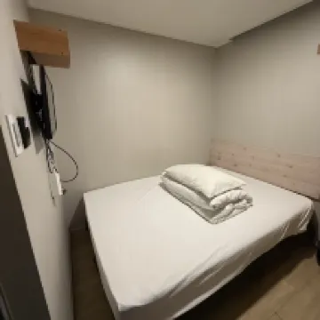 The location extremely convenient, walk distance from metro exits 6. It’s on the main road of myeongdong, right above popmart shop. Room was big enough for solo traveler. Bed was surprisingly bigger, with attached toilet. Pantry/kitchen area was full of equipment like microwave oven, air flyer, water dispenser with hot/cold water. Overall very satisfied with the stay. I’ll definitely choose this place for my next visit to Korea again
