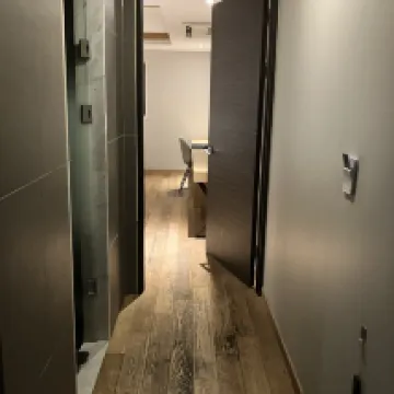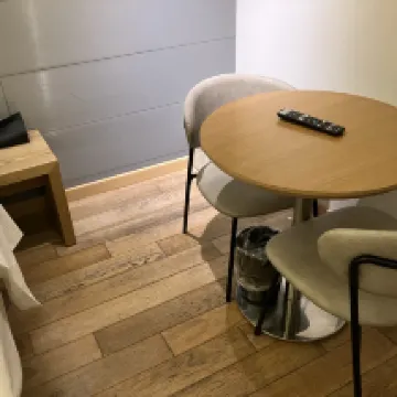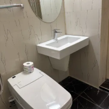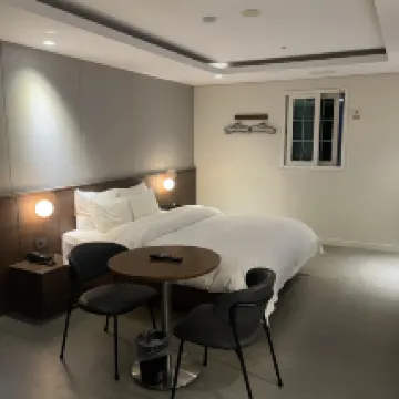 My daughter and I stayed for three nights. There was no bathtub, but the shower and toilet were separated, and we could flush toilet paper, which was nice. The room, shower, and toilet were separated by frosted glass, so it might not be suitable for friends. The room was spacious, with plenty of space even for a suitcase. Bathrobes were provided, but nothing like the Japanese yukata. Amenities were plentiful. There were no outlets near the mirror, which made using a hair dryer a bit inconvenient. It was great that water, coffee, bread, and other items were freely available in the lounge on the second floor. There was also a convenience store nearby. Kachisan Station has some stairs, so it can be difficult with heavy luggage. It's convenient because there are no transfers from Gimpo Airport.