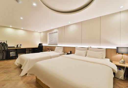 Although it felt a bit like a motel, the room and bathroom were quite spacious and quiet, allowing for a good night's sleep. Bath towels and toiletries (shampoo, etc.) are provided. If you forget items like a toothbrush or toner, you can purchase a set containing various essentials for 2,000 won. The guy at the reception was also very kind.