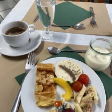 El hotel horrible tenia mucha humedad tuvimos que dormir con mantas del frio y humedad que hacia en la habitación estaba sucia llena de pelos y las sabanas manchadas y el baño ni te cuento calaba agua de la habitación de arriba la bañera sucia las cortinas blancas sucias se caian los azulejos. El hotel y el baño todo super viejo. Contratamos media pension y la comida bastante mal no habia variedad y pal colmo al llegar no nos dejaron pasar por que no tenian la lista actualizada y no salia nuestra habitación en la lista.