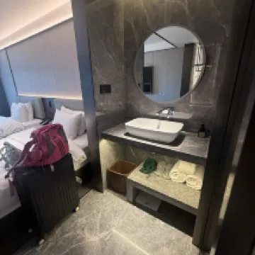 Staff were mostly friendly and helpful, but the biggest issue we encountered was on the last night when cigarette smoke smell started coming into our room. Despite closing the windows, the smell unexpectedly worsened. When my husband returned to the room after being out for a while, he also noticed the strong smell compared to the air outside the room. We contacted the front desk via WeChat, and a staff member came to inspect the room. He claimed not to smell cigarettes but mentioned that his nose might still be blocked from being sick. When asked for an air purifier, we were told they used to have them but not anymore, and that the 快递 (courier) had not arrived. The staff offered to move us to another room the next day if one became available, but we were checking out in the morning (and also highly doubt that the hotel was at full occupancy). When asked if the neighbouring rooms were smoking rooms, the staff said they would not know whether guests smoked in them. This was annoying since we were traveling with an infant and had specifically booked a non-smoking room. The staff only offered a diffuser to mask the smell, which does not address the real issue...