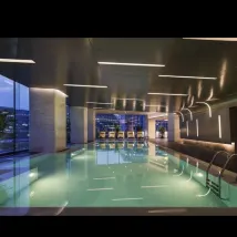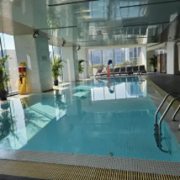 Modern hotel with clean and spacious rooms. It's located right next to a big shopping centre, and the line 2 subway station is at 10 minutes walking distance. The gym is good, the pool is convenient, however the changing room only has one single shower. Overall a nice and convenient stay.