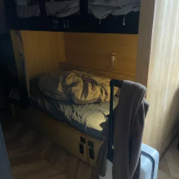 For this price in this location, it's not bad. The room itself is okay, but some areas are a bit dirty, like the showerhead could use some cleaning. The staff gave me two sets of sheets, but I couldn't get through when I called, and I was too tired to go down to the front desk to change them, so I just made do. The front desk should really pay more attention to details. Most importantly, the room's signal isn't great, and the Wi-Fi is pretty average – gaming was very laggy. Also, there are no power outlets by the bed, just a USB charging port. The only regular outlets are by the desk, so unless your charging cable is at least 2 meters long, you won't be able to lie in bed and charge your phone. And even then, 2 meters only works for the bottom bunk; the top bunk would need an even longer cable.