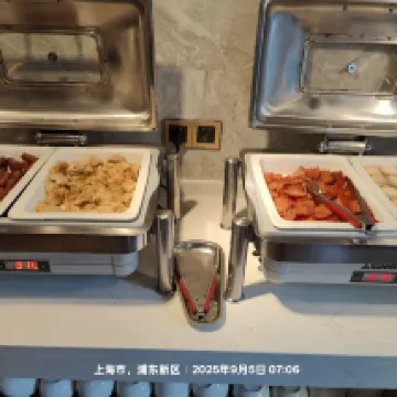 The hotel has a good location in Tangzhen, Pudong, making it convenient for getting around. The decor is Western-style, but the rooms are a bit dated, and the lighting is a bit dim. My biggest disappointment was the breakfast: the variety was limited, the bacon quality wasn't great, and there was no noodle bar or fried egg station. I hope they improve this! There's an underground parking garage, which is a plus.