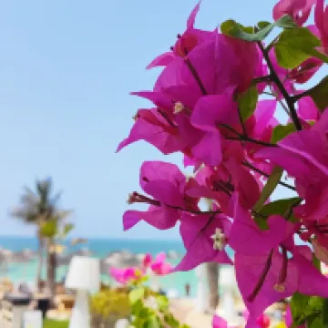 Popular with Russian clientele. The private beach gets crowded very early and stays crowded all day. The outdoor pool is largely in the shade. 15 to 20 minute walk to the lovely public beach. The rooms are ok. The meals are a bit expensive compared to the competitors but offers good choices nevertheless.