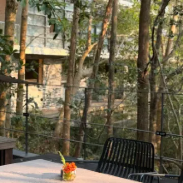 Perfect mountain retreat for a weekend getaway. We chose a room on the third floor which had a large private terrace and outdoor tub. There common areas on each of the three floors where you can choose to have breakfast or dinner as an add-on. We chose to have coconut chicken on the first night and thoroughly enjoyed the meal.