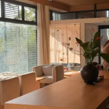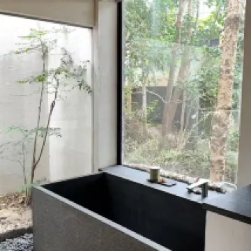 The hot tub was incredibly relaxing, especially with the forest right outside. After a good soak, I felt completely refreshed. I loved that the hotel even grows organic vegetables and fruits outdoors; they were bursting with ripeness this season, which was such a lovely and wholesome sight. The guesthouse's decor was absolutely perfect for my taste – any designer would be thrilled! It’s an ideal spot for a relaxing weekend getaway. 😌
