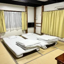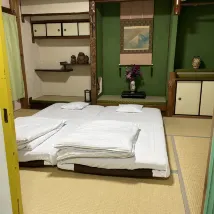Advantages: The hotel is located right next to Sandanbeki, and it is almost the last stop of the Shirahama Meiko bus line. It is a good value for money. If you stayed at Kaishu the night before, you can stay at Sandanya the next night to make up for the price difference. The bed in the Japanese-style room is soft and comfortable, and there is enough space to spread out the suitcase. The rooms are on the second floor, with a toilet and a shower on the first floor. The kitchen and tea bar are also on the first floor, with tableware and wine glasses. Bicycles can be rented. The boss speaks English and is very enthusiastic.