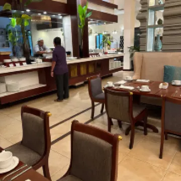 Service is good. Breakfast is okay.