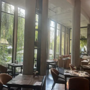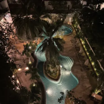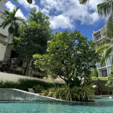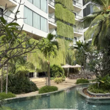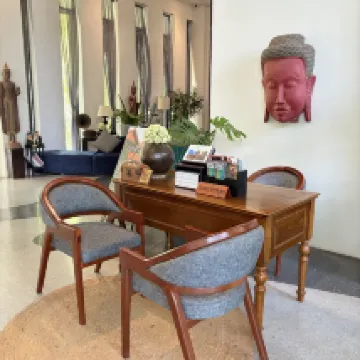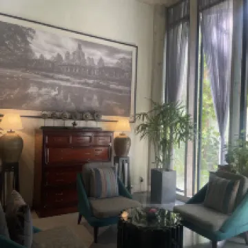 This hotel opened just a few years ago and the design is fantastic, especially the lobby. The breakfast is delicious, the service is excellent, and the spa is great, even if it is a bit pricey. You can wake up to the sunrise from your room every day. There isn't much scenery around, it's like an oasis in the desert. There's an ATM right outside the entrance. The location isn't too far from Old Market, and a tuk-tuk ride usually costs 6000 Riel. The soundproofing of the room doors isn't the best; you can often hear the staff talking, which I hope they can improve. Also, two of the electrical outlets in the room were a bit loose, and the hairdryer would fall out as soon as it was plugged in. Overall, it's a great place, and I'd definitely stay here again on my next visit to Siem Reap.