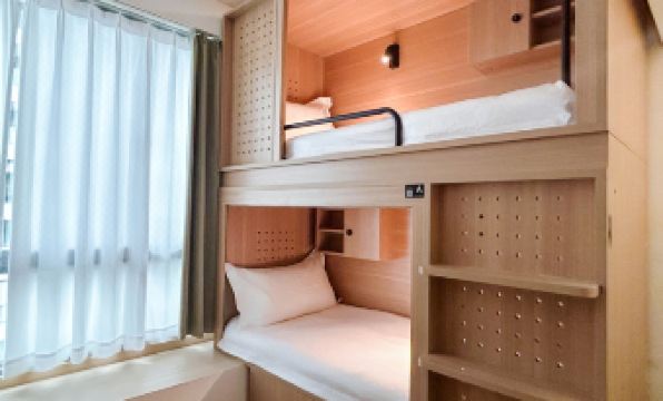 The hotel is newly opened and currently in a soft-opening phase. Wi-Fi is only available in the lobby on the first floor, not in the rooms. The rooms have bunk beds and plenty of storage space, plus they have proper windows, which is a great design – we could open them for ventilation when we went out. There was no formaldehyde smell in the room either. Currently, toiletries are self-service, but this might change once they officially open. If you arrive early or need to store your luggage on your last day, you can do so in the lobby.