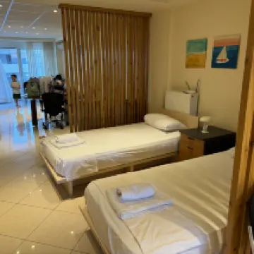 It's very close to the airport. The official taxi price is 10 euros, but in fact you have to pay about 20 euros. Even if you take an uber taxi here, you will still be ripped off... The room is a good self-check-in and very big.