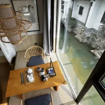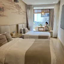 The owner was incredibly kind. They even reached out to us on WeChat in advance and provided fantastic free recommendations for dining and sightseeing. We arrived during a heavy downpour, and the owner bravely came out in the rain to help us with our luggage. The room itself was perfectly our style – we absolutely loved brewing tea by the window, listening to the rain, and soaking in the tranquil ambiance. It was truly a delight! The cleanliness was impeccable; our toddler could even run around barefoot. To top it all off, the owner thoughtfully brought us complimentary fruit and pastries.