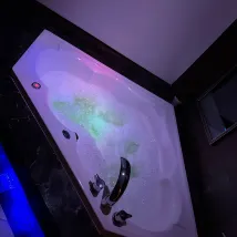 Some strange features - large jacuzzi with lighting effects in the bathroom, condoms in the bathroom and parking garage with covered number plates. Would not recommend the spa.