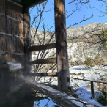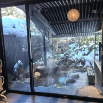 Each room has a private hot spring. The temperature is high enough. It’s a full experience to soak in the hot spring in the snow