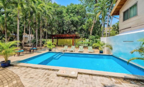Our shaded gazebo is a peaceful outdoor dining area, equipped with hammocks, far removed from the tourist throngs. For those drawn to the allure of the ocean, our property has a private beach staircase which leads directly to the sandy beaches of Tamarindo, inviting you to unwind to the gentle sounds of the waves. Plus, with surfboard rentals readily available, adventure seekers can effortlessly indulge in the thrill of surfing Costa Rica’s renowned waters. Our vacation rental is your gateway to a tranquil beach vacation, combining comfort with the natural beauty of Costa Rica.