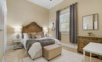 The property features 3 bedrooms with one king bed and two queen-sized beds and 2.5 baths in the main house, with an additional 1 bed (Queen) 1 bath apartment above the garage, providing enough room for up to 12 people. Each of the 3 bedrooms has ample storage space, a desk, and a 50" smart TV, making it easy to unwind at the end of the day.