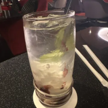 The welcome drink is a glass of fruit jam, yogurt on top with sparkling water 😝