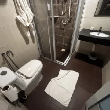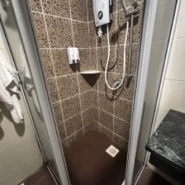 The room was visibly cleaned haphazardly with half-used toilet rolls and leftover drinks hanging on the doorknob of the toilet. The drain in the toilet had a super bad odour that made it hard to even breathe in. The hairdryer was working but the entire device was hanging on a thin thread of wire which can be very dangerous. The extra pillow provided was also mouldy and the cardboard smelt really bad. The aircon was working fine but when you first enter the room the air would be stale and it can get quite humid. Came back on the second night to a door that was unresponsive to our room key card. The service of the staff was ok though.