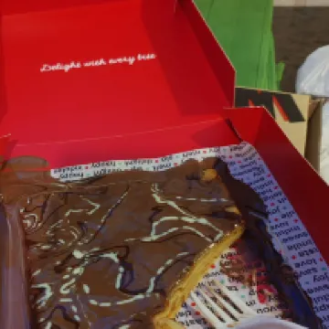 Receptionist was welcoming and pleasant to talk with, room was decently well maintained (Didn't take pictures) and it felt okay to good for a night's stay. Nearby is Paradigm Mall where the picture was the DipnDip chocolate crepe that I bought, delicious 😋