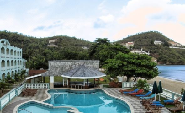 The room was clean but dated. The balcony had a great view of the beach. The grounds were meticulously maintained. The beach was beautiful. The pool had a swim-up bar. But there was no microwave, coffee pot, suitcase rack, tissues or hair dryer. Only a kettle. There was no floral arrangement in my room as advertised. I never knew whether my shower was going to be the polar plunge or molten lava. It changed daily. We lost water and electricity twice, and for hours at a time. The ceiling fan didn’t work. Nor did the outlet in the bathroom. The air conditioner blew directly onto the bed. The balcony chairs were hard wooden slats. Most of the chaise lounges were broken or missing pieces. The restaurant was not open for dinner. There was a barbecue on the beach, but the food was cold. We had to use water shoes because the beach was full of stones.