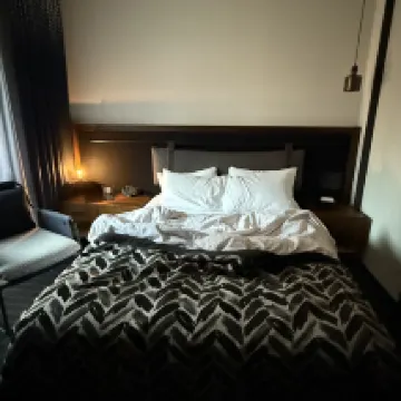 The room wasn't huge, but it was perfectly adequate. I booked the 2.4-meter king bed which was super comfortable, though it's a pity there was no bathtub for a soak. The overall design and ambiance of the hotel are fantastic, with its own stylish aesthetic. The best part was definitely the happy hour from 5-6 PM; there was a great selection of drinks, and the bar on the 2nd floor was so relaxing and cozy – a definite plus! Breakfast was a simple set menu, which was fine, but it's not a buffet. The lobby staff were incredibly attentive and spoke excellent English too! 👍