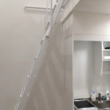Studio G2 is located within walking distance of Ikebukuro, which is a bustling area both during the day and night. It was conveniently located close to transport, including the Tokyo Sakura Tram (the last tram line in Tokyo). A convenience store (Maruetsu Petit) is just round the corner. After seeing the accommodation online, I thought it would be an interesting place to stay. This proved to be both a positive and negative experience. The positives: location, modern, extra cooking facilities (stovetop, frypan, saucepan, knife, ladle, spoon), plates/bowls, cutlery, mug, separate shower / toilet (and both were clean). The negatives: linen was dirty (after contacting manger, clean linen was provided on bed), no bathmat (only towel, hand towel / face washer), small chair to sit on (which wasn't very comfortable), only 1 pillow available (request was made for another, but response was 1 pillow as a single bed, justified, but not helpful), no plugs for basins, no glass for drinking. If there are other people staying in adjoining rooms, then you are likely to hear noise coming from these. Once I filled in the online form (and although providing a copy of my passport initially, this may have been missed) the instructions for accessing the room were easy to follow. Although it was easy to climb up the ladder to access the bed, if I had to do this again, I probably wouldn't choose this style of accommodation.