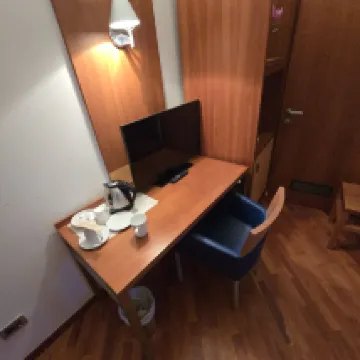 Supermarket nearby. Bus station in front of the hotel. Big bed. Furniture a bit old. Nice staff and you can ask for extra amenities at the reception without cost. 40 min walk to city center