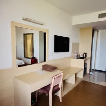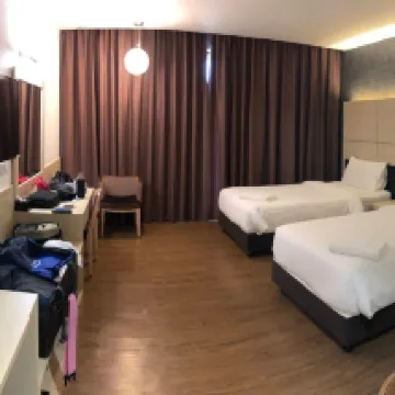 The room was spacious and comfortable. The air-conditioning worked very well and was nice and cold. The bathroom was clean and well-maintained. Overall, the hotel is okay and suitable for a stay. The location is good, right in the city center, which makes it very convenient. There is also a mart next to the hotel that is open until 2 a.m., which is very helpful. The only area that needs improvement is the breakfast.