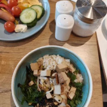 Right across from the train station, this hotel is super convenient for train and public transport. If you know Ibis, you know it's clean and practical. The breakfast is quite extensive for a budget hotel; they have a self-service waffle maker which is delicious! The vegetable selection is the standard three options you find in German-speaking countries, and of course, plenty of dairy products and cheese. Oh, and this was the only place on my trip that offered Japanese miso soup and rice for breakfast, haha! Even though I don't have a 'Chinese stomach,' I couldn't resist trying half a bowl—it was just what I needed, nice and warm. I saw Japanese and Korean tourists each having a big bowl, haha.