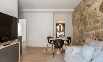 Beautifully decorated property in a wonderful, vibrant, walkable neighborhood. This property is comfortable, spacious, stylish— and just NICE. New furnishings, new finishes, and quality throughout. Had everything I needed and was spotlessly clean. I especially loved being on the 3rd floor (4th for us Americans), with three sets of double doors that opened onto miniature balconies (not a balcony where you could sit, but with a railing that turned the living room, dining room, and bedroom into delightful indoor/outdoor spaces. I could bring the outdoors inside, and feel the energy of the city without leaving the apartment. And, yes, there is an elevator, so it was easy to get luggage to the apartment. This is a great place!