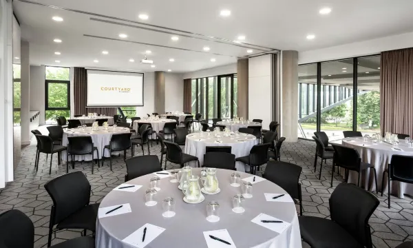 Travel brilliantly at Courtyard Vilnius City Center. Our new, four-star hotel is set in the business district of Vilnius, Lithuania overlooking the famous landmark, Gediminas' Castle. We are ideally positioned just steps away from the medieval Old Town, business centers and local attractions. Our hotel offers 199 spacious, stylish rooms (some with lovely Old Town and cathedral views), featuring a mini-fridge, complimentary Wi-Fi, sleek bathrooms, cable/satellite/streaming TV and hot buffet breakfast.Enter your room conveniently using a mobile key. Stop by Solt Dining for delicious local and global cuisine and cocktails, or enjoy terrace dining with spectacular castle views. Visit The Market for a quick bite to go, or take a drink in our Lobby Bar. Unwind in our state-of-the-art fitness center. Those planning a meeting or function in Vilnius will appreciate our four sophisticated venues, catering services and tech-enabled media pods in our ultra-modern lobby.