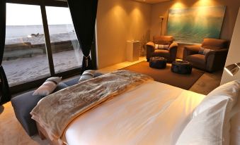 Location is amazing! Beautiful view on the ocean! Very calm and far from everything except seals 😁 Atmosphere was really warm! Owner of this hotel and employees are very kind, friendly, warm soul people!❤️❤️❤️ The chef makes the best dishes, and bread is the soul! 🥹☺️ Room on the top was really big with panoramic windows. Bed is big and comfortable. This room is Good for people who have lived together for a long time. There are no partitions in the bathroom or toilet, just one huge room. Everything is transparent. So… Totally worth! Also big bar…. You can drink what you want, that’s nice option. Of course, you ll be so busy to just sit in room, but possibility to feel FREE in your food drink choices gives really good feeling!!!!💯💯 Feels like it’s your own home annd you can do what you want! ❤️❤️ Extra wonderful bonus! + Incredibly cute warmers in sweaters to keep you warm 🥹🥹❤️❤️