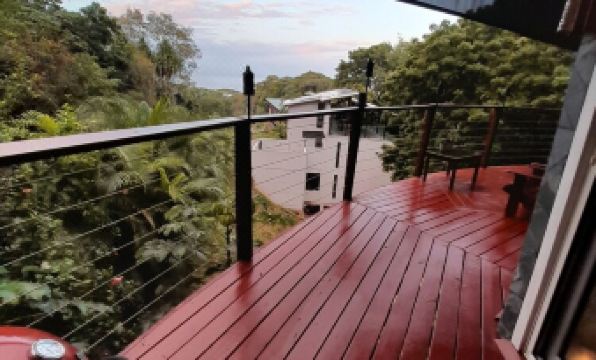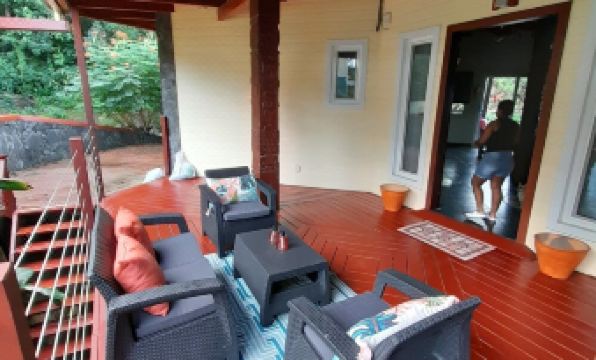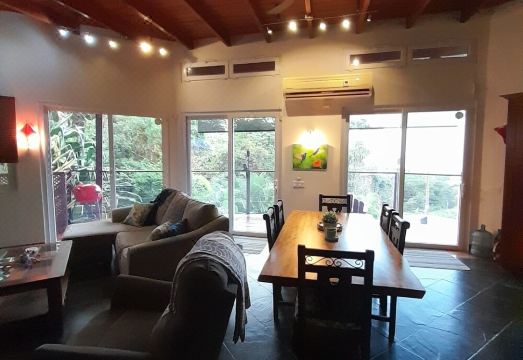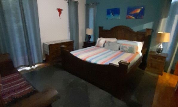 Unique home with wood carvings as pillars, Between West Bay and West End. Less than 10 min to each location. Full comfortable 2 bedrooms with queen beds. Full kitchen with basic spices. Wake up to the birds and the ocean. You are not on the beach but, look over the ocean. Inside laundry room. Large deck with a propane grill and a charcoal grill. My rule to guests..."Roatan is casual, pack light and then remove items from your bag. Swim suit, shorts, light coverup and flip flops. Personal items and your done." Wash what you need. Relax.