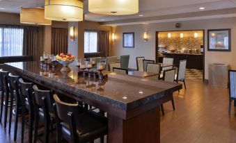 Indulge in a complimentary fresh full hot breakfast each morning that features guest favorites like a build your own pancake and oatmeal station, allowing you to pick your perfect toppings, freshly made biscuits and sausage gravy, two types of scrambled eggs and many other rotating hot items, fresh fruit, selection of pastries bread and cereal, juice, coffee and much more.