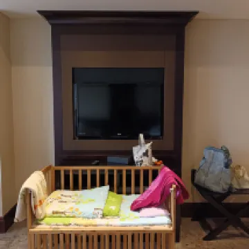 The family room exceeded our expectations! It was spacious and came fully equipped with a kids' slide, a children's book nook, and a play corner. The biggest highlight was the large projector, perfect for our family to rewatch The Legend of Hei 2 – it was fantastic! The front desk receptionist, Ms. CC, provided excellent service; she had all the children's amenities prepared for us even before our arrival. Big thumbs up!