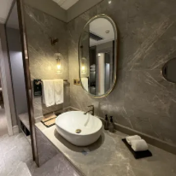 The service was enthusiastic, and the room was spacious with relatively new facilities. There were alcohol wipes next to the smart toilet, showing thoughtful attention to detail. The free minibar in the room had a good variety of drinks, which is a nice touch for guests who enjoy beverages. The location is convenient, very close to the Shaanxi History Museum and the Grand Tang Mall (Datang Everbright City).