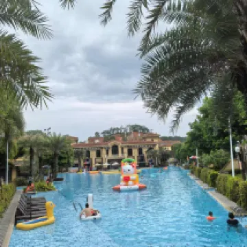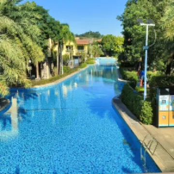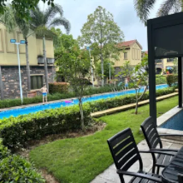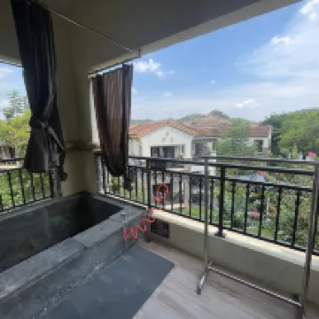 The environment is very pleasant and the scenery is beautiful! Parking is convenient, and 2 cars can be parked at the door of this villa. There is a hot spring pool on the balcony of each room of this room type, and there is also a hot spring pool in the garden, which is clean and tidy. There is a mahjong table, and children play water projects. The park has a children's playground and a reasonable design of water villas, with direct access to the swimming lane. The swimming lane is cold water. The hotel also has a large hot spring area where you can play in the water. There are many farmhouse restaurants around, and the hotel also has a singing KTV area. It is a good place for vacation. It is suitable for a family to play and everyone can have fun. The waiter service is very good, and the breakfast has a certain variety, which is ok. There is a sightseeing car to pick up, which is very convenient. The downside is that no matter how late you stay, the fruit will not be delivered the next day. The comments are real, voluntary and objective. No staff asked for high-score comments. This is a more practical hotel management.