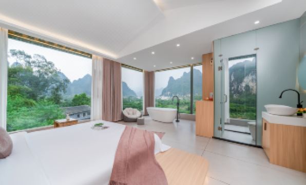 Overall, I only give it a 2.5 out of 10. One point for the helpful and attentive front desk staff, one point for the relatively clean room with a bathtub and smart toilet, and 0.5 for the decent view, though not significantly better than hotels in Yangshuo County. There were also areas that looked like garbage dumps and other unsightly rooftops nearby.