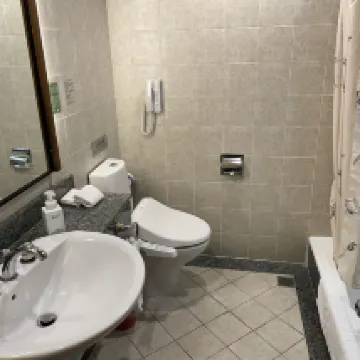 The room is clean, tidy and bright. The bathtub is large and it is very comfortable to take a bath in the room. It's a pity that the activity space of the 4-person room is a bit small. The sound of the train passing behind is quite loud.