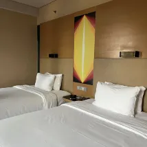 The twin room is spacious, with two 1.5-meter beds, very comfortable to sleep on! The hotel also has a gym and swimming pool, which is great
