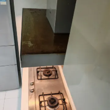 2) The hygiene in the house is not good. There are greasy stains all over the top and back of the range hood, which is very horrible. The dishes in the kitchen cabinet are covered with dust. Open the door to the living terrace and the smell comes rushing in.