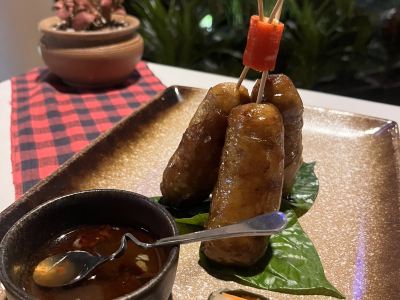The waitress in the Malis Cambodian restaurant has an exquisite bun with a flower on her head. She has a dark complexion and a voluptuous waist that is so beautiful. The ancient Khmer cuisine is special and novel, and it is necessary to give the taste buds a different experience [shy]