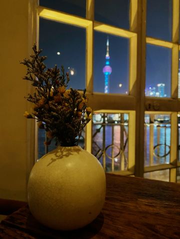 One of the best view restaurants in Shanghai, you can see the three-piece set and countdown lights throughout the meal.