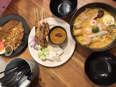 The Malaysian restaurant on top of the Petronas Twin Towers, the satay skewers are delicious, the milk tea is also good, I ordered a laksa, which is super authentic, the fish cakes are also delicious, and the eggs are served with spicy soup.