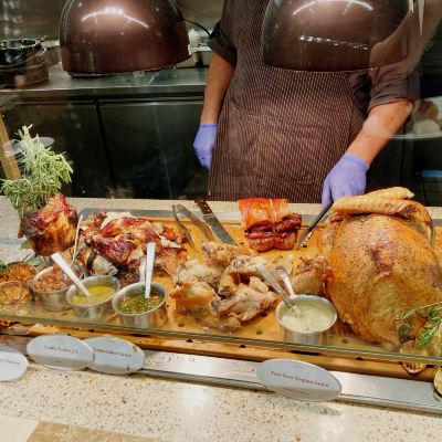 Bacchanal Buffet is a restaurant with a great environment, located next to the lobby of Treasure Island Hotel. We went there for lunch for the buffet, which had a rich variety of dishes, including seafood, steak, sushi, desserts, and ice cream of various flavors.