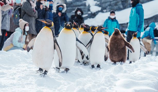 ▲ (The penguin walk is expected to take place from December to March, and a 2:30 PM viewing will be arranged at that time.) Visiting Hokkaido's Asahiyama Zoo on a snowy day offers a unique kind of fun: adorable penguins collectively stroll in the snow, clumsy raccoons climb overhead making funny faces, curious seals swim up and down and around in glass columns, and monkey groups huddle together for warmth. A major feature here is that the animals are largely kept in a relatively free-range environment, and clever exhibits allow visitors to observe them up close.