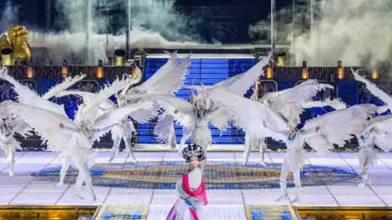 Based on "real mountains, real waters, and real history," the show recreates historical scenes before the audience's eyes using high-tech stage lighting and effects.